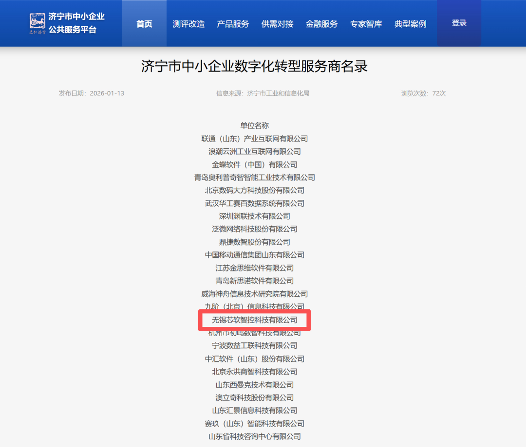 近日,無錫芯軟智控科技有限公司憑借深厚的技術積累、成熟的解決方案以及豐富的行業實踐,成功入選山東省濟寧市中小企業數字化轉型服務商名錄,這標志著芯軟云在推動企業數字化、智能化轉型方面獲得了認可。